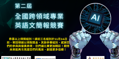 第二屆全國跨領域專業英語文簡報競賽名次公布