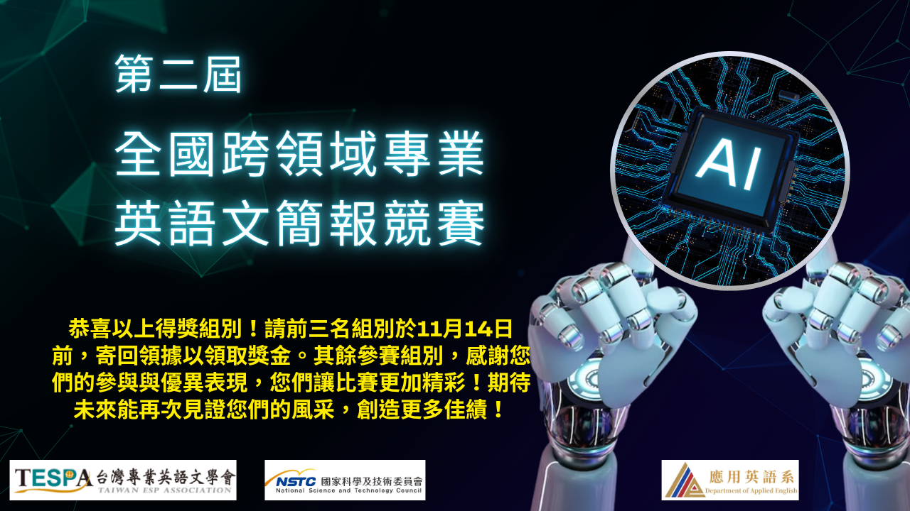 第二屆全國跨領域專業英語文簡報競賽名次公布